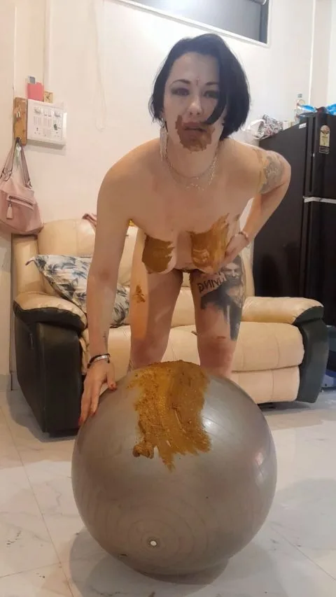 I will make my feet dirty with poop, pee over my kinky ball and make a real scat mess all around the room, rolling over my smeared yoga ball, playing with it while shaking my dirty boobs and showing my dirty ass cheeks all the time. At the end I smear my face, spit hot and dirty and need your cum all over my shitty mouth or body, wherever you like to.